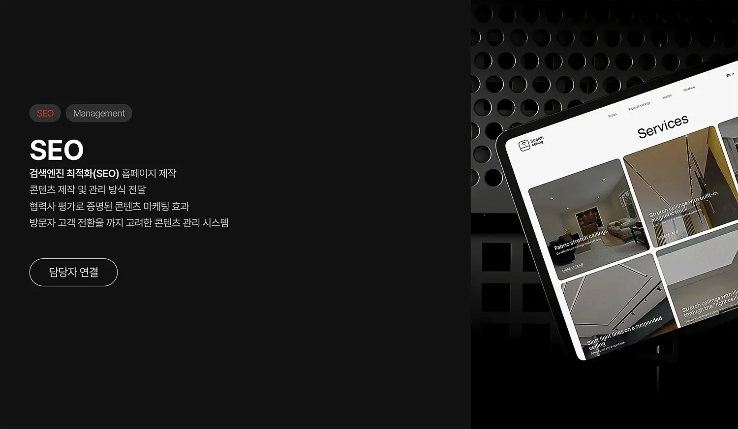 - 채널 구축 – 호스팅, 설치, 웹구조 결정, 세부 디자인, SEO 및 GEO 구조 세팅 순으로 진행